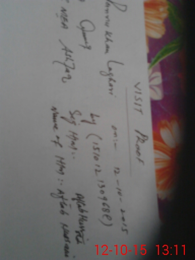 | Monitoring Date: 12-10-2015 | Start Time: 12-10-2015 12:56 PM | End Time: 12-10-2015 01:12 PM | Name of MEA: Mu**** As**** | |