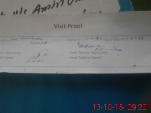| Attendance Register | Head Teacher | MEA with School | Visit Proof |