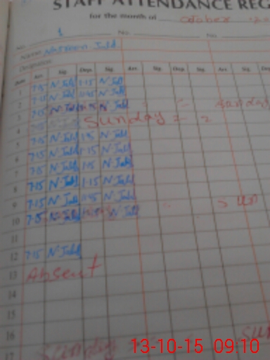 | Monitoring Date: 13-10-2015 | Start Time: 13-10-2015 08:50 AM | End Time: 13-10-2015 09:12 AM | Name of MEA: Mu**** Am**** | |