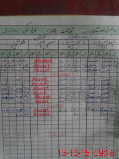 | CNIC | Full Name | Designation | R/C | Absence During Last Calender Month |