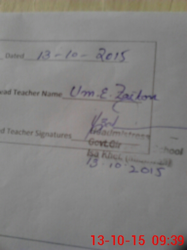 | Name: Ai**** Kh**** Ha**** Designation: (School Headmaster's/Headmistress's) Sst Phone/Cell Number: 03**** |