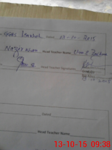 | EMIS Code: 38310015 | Name of School: GGHS ISA KHEL | |||