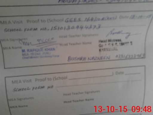 | Certified that this School was Inspected by the Undersigned MEA/DMO Today and the Information Stated Above is as Per Record. | |||||