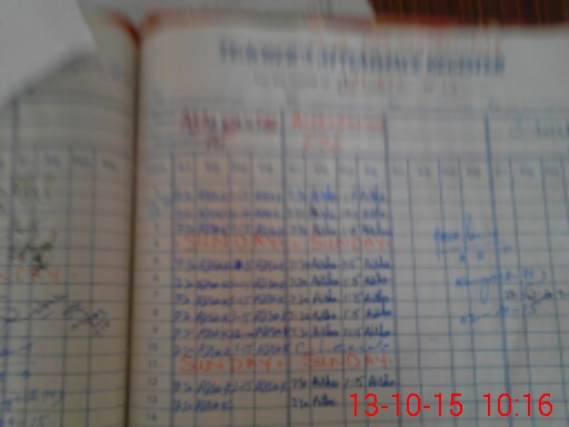 | Monitoring Date: 13-10-2015 | Start Time: 13-10-2015 09:57 AM | End Time: 13-10-2015 10:24 AM | Name of MEA: Mu**** Na**** | |
