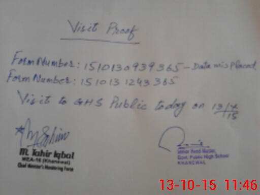 | EMIS Code: 36420004 | Name of School: GHS PUBLIC RAILWAY ROAD, KHANEWAL | |||