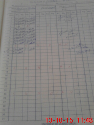 | CNIC | Full Name | Designation | R/C | Absence During Last Calender Month |