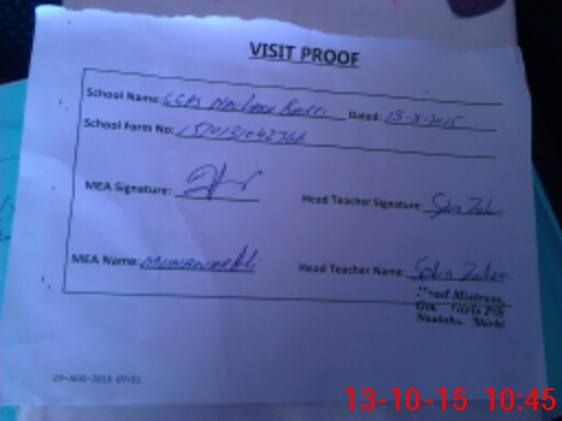 | Attendance Register | Head Teacher | MEA with School | Visit Proof |