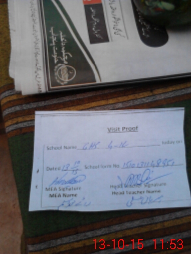 | Attendance Register | Head Teacher | MEA with School | Visit Proof |