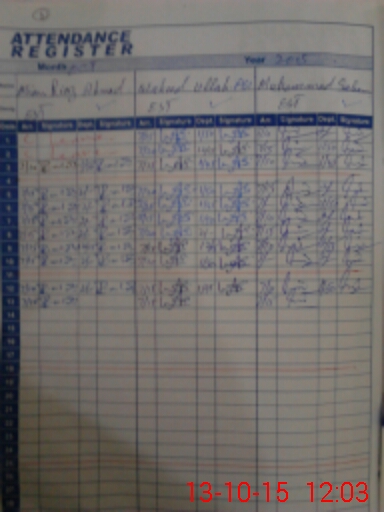 | CNIC | Full Name | Designation | R/C | Absence During Last Calender Month |