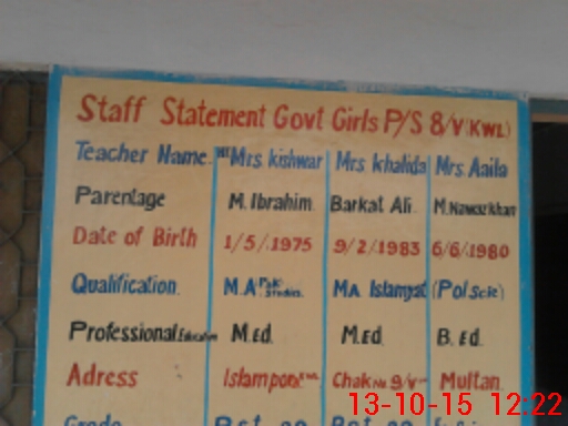 | EMIS Code: 36420381 | Name of School: GGPS 8/V, KHANEWAL | |||