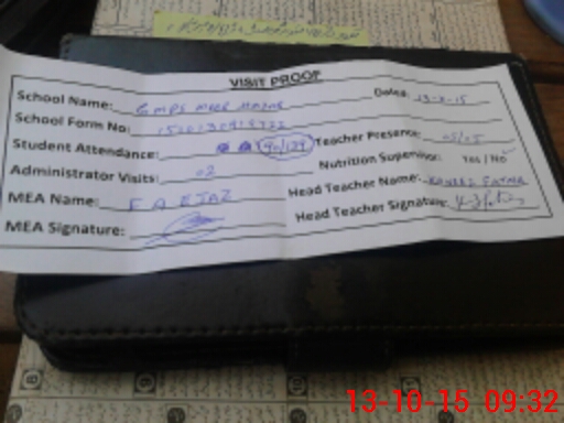 | Attendance Register | Head Teacher | MEA with School | Visit Proof |