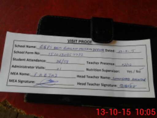 | Attendance Register | Head Teacher | MEA with School | Visit Proof |