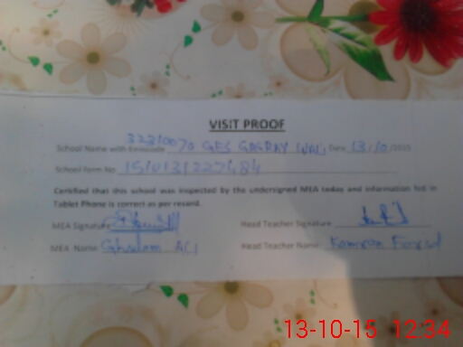 | Attendance Register | Head Teacher | MEA with School | Visit Proof |