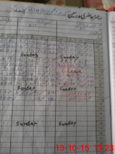 | CNIC | Full Name | Designation | R/C | Absence During Last Calender Month |
