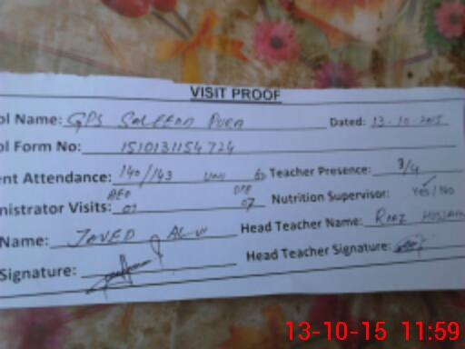 | EMIS Code: 32410553 | Name of School: GPS SALEEM PURA | |||