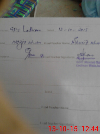 | EMIS Code: 38310423 | Name of School: GPS LODHRAN WALA | |||