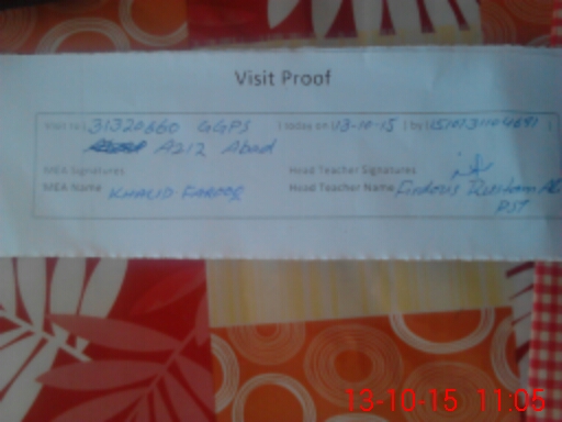 | Attendance Register | Head Teacher | MEA with School | Visit Proof |