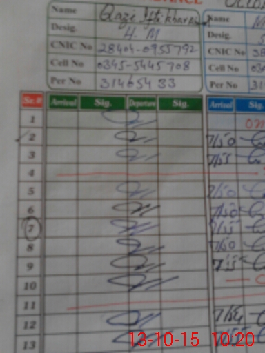 | CNIC | Full Name | Designation | R/C | Absence During Last Calender Month |