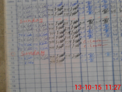 | Monitoring Date: 13-10-2015 | Start Time: 13-10-2015 10:57 AM | End Time: 13-10-2015 11:33 AM | Name of MEA: S-**** MO**** AZ**** (R**** 12**** | |
