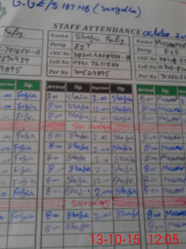 | CNIC | Full Name | Designation | R/C | Absence During Last Calender Month |