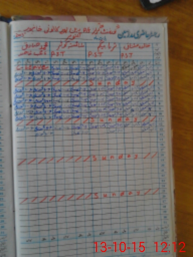 | CNIC | Full Name | Designation | R/C | Absence During Last Calender Month |