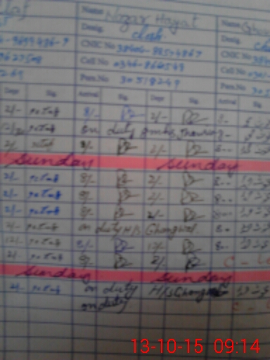 | CNIC | Full Name | Designation | R/C | Absence During Last Calender Month |