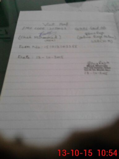 | Monitoring Date: 13-10-2015 | Start Time: 13-10-2015 09:47 AM | End Time: 13-10-2015 10:55 AM | Name of MEA: Sh**** Mu**** | |
