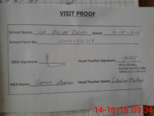 | Attendance Register | Head Teacher | MEA with School | Visit Proof |