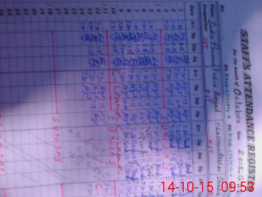 | Monitoring Date: 14-10-2015 | Start Time: 14-10-2015 09:19 AM | End Time: 14-10-2015 09:58 AM | Name of MEA: Mu**** Ak**** | |