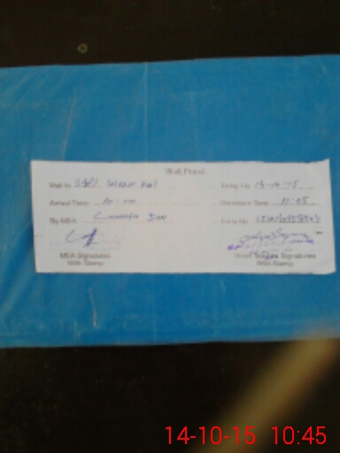 | Monitoring Date: 14-10-2015 | Start Time: 14-10-2015 09:58 AM | End Time: 14-10-2015 10:45 AM | Name of MEA: Ch**** Di**** | |