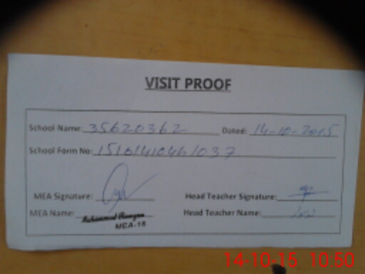 | Attendance Register | Head Teacher | MEA with School | Visit Proof |