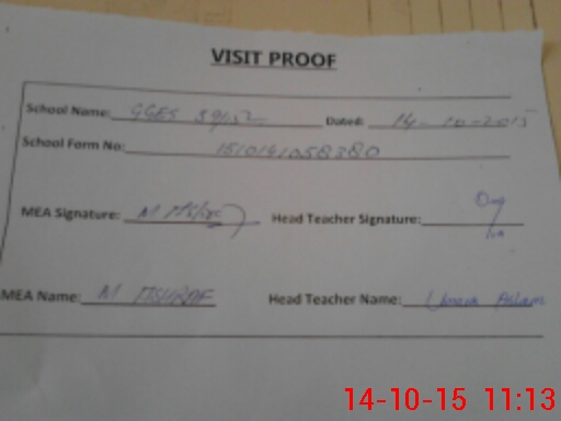 | Attendance Register | Head Teacher | MEA with School | Visit Proof |