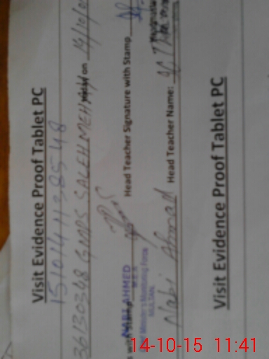 | Attendance Register | Head Teacher | MEA with School | Visit Proof |