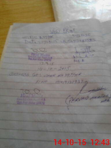 | Monitoring Date: 14-10-2015 | Start Time: 14-10-2015 12:19 PM | End Time: 14-10-2015 12:46 PM | Name of MEA: Pe**** Ak**** BN**** 12 | |