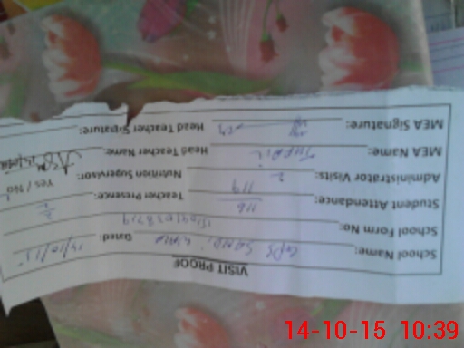 | Attendance Register | Head Teacher | MEA with School | Visit Proof |