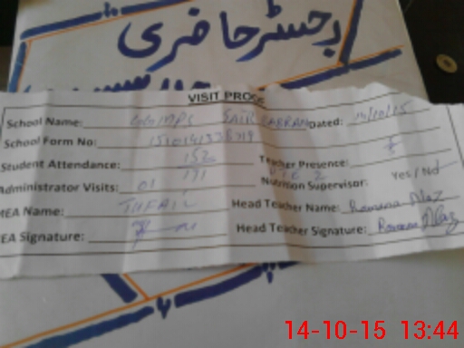 | Attendance Register | Head Teacher | MEA with School | Visit Proof |