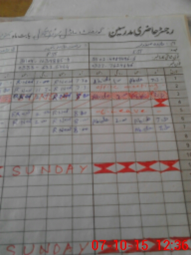 | CNIC | Full Name | Designation | R/C | Absence During Last Calender Month |