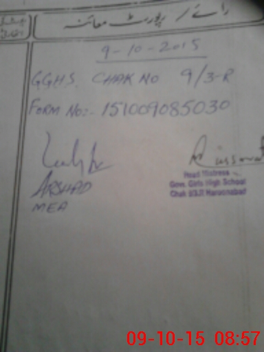 | EMIS Code: 31140026 | Name of School: GGHS CHAK NO 9/3-R | |||
