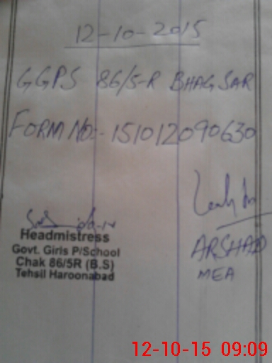 | EMIS Code: 31140308 | Name of School: GGPS CHAK NO 86/5-R BHAGSAR | |||