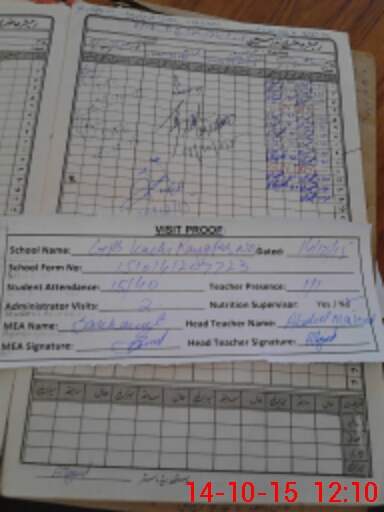| Attendance Register | Head Teacher | MEA with School | Visit Proof |