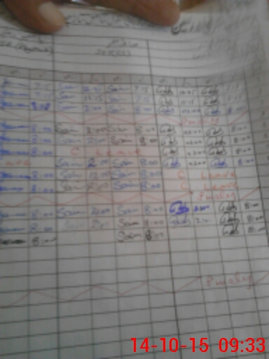| Monitoring Date: 14-10-2015 | Start Time: 14-10-2015 08:52 AM | End Time: 14-10-2015 10:04 AM | Name of MEA: Ab**** Ra**** Am**** BN**** 28 | |
