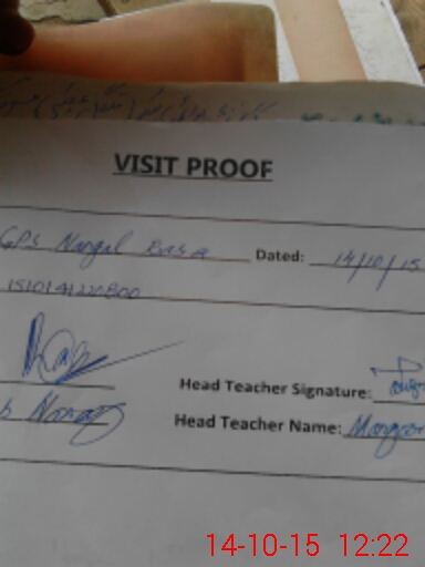 | Attendance Register | Head Teacher | MEA with School | Visit Proof |