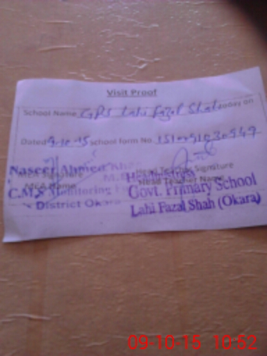 | EMIS Code: 39320451 | Name of School: GPS LAHI FAZAL SHAH | |||