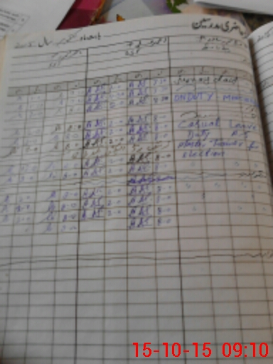 | CNIC | Full Name | Designation | R/C | Absence During Last Calender Month |