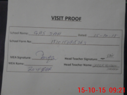 | Attendance Register | Head Teacher | MEA with School | Visit Proof |