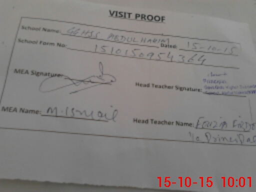 | Attendance Register | Head Teacher | MEA with School | Visit Proof |