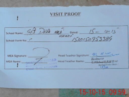| Attendance Register | Head Teacher | MEA with School | Visit Proof |