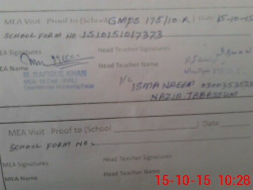 | Certified that this School was Inspected by the Undersigned MEA/DMO Today and the Information Stated Above is as Per Record. | |||||