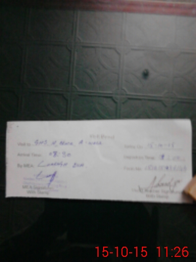 | Monitoring Date: 15-10-2015 | Start Time: 15-10-2015 10:36 AM | End Time: 15-10-2015 11:27 AM | Name of MEA: Ch**** Di**** | |