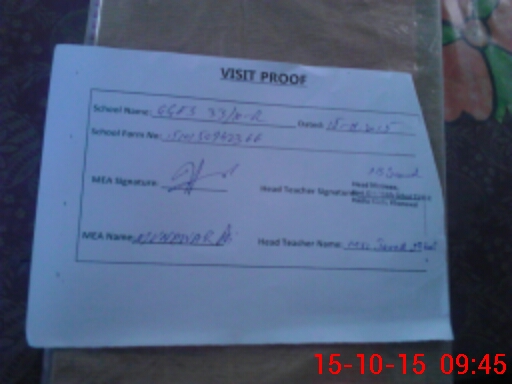 | Attendance Register | Head Teacher | MEA with School | Visit Proof |